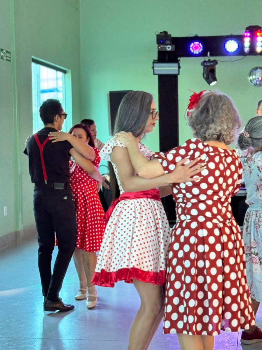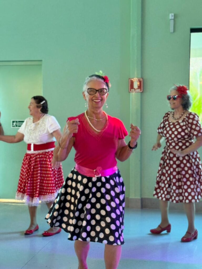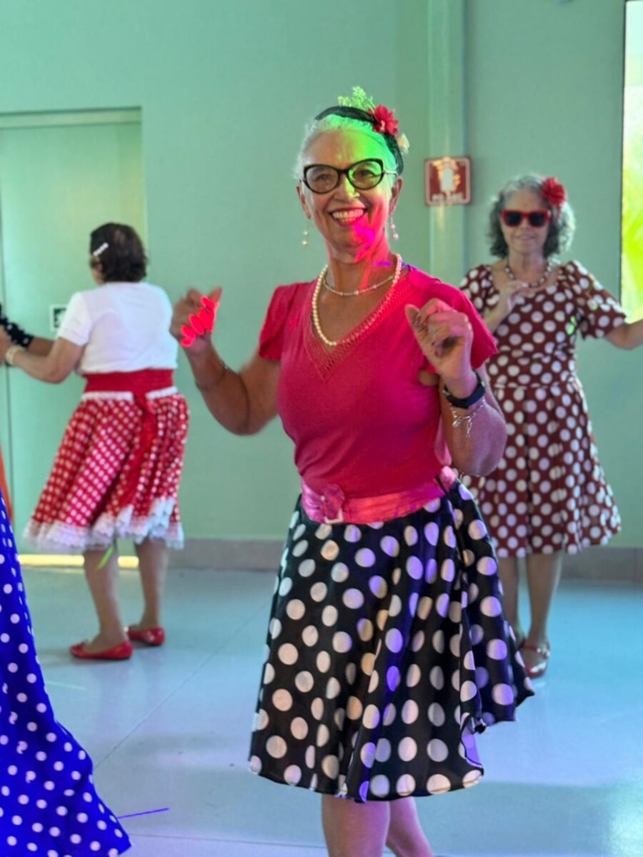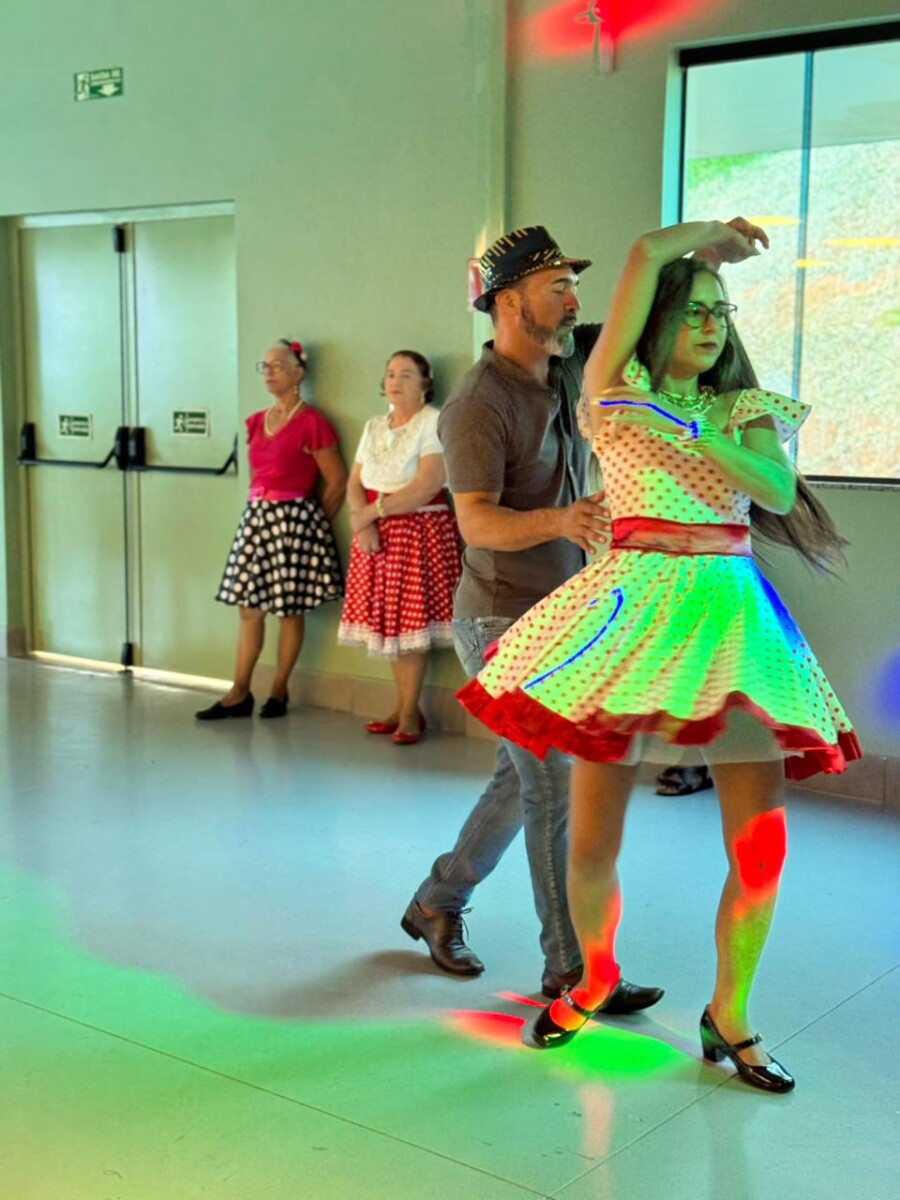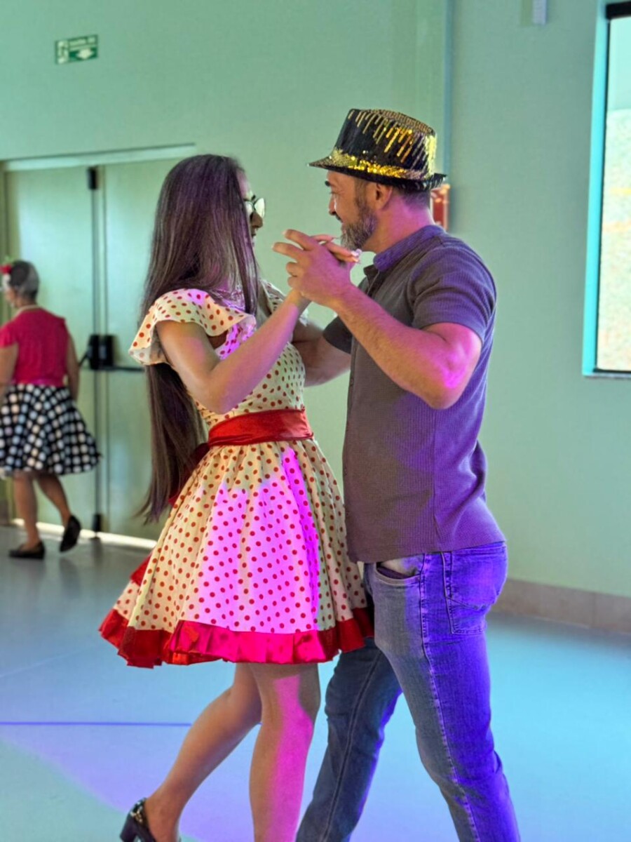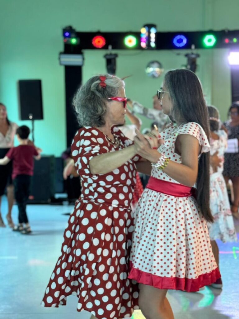 O evento foi uma verdadeira viagem no tempo, repleta de música, cores e alegria. O destaque da tarde ficou por conta do Grupo de Dança Possibilidades e Desafios, coordenado pela professora Célia Maria, com os talentosos monitores João Allisson, Oliver Roger, Carlos Costa e Poliana, que contagiaram o público com suas performances vibrantes.
