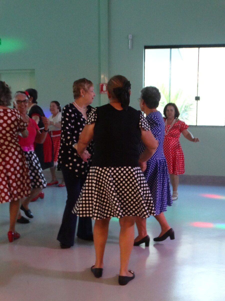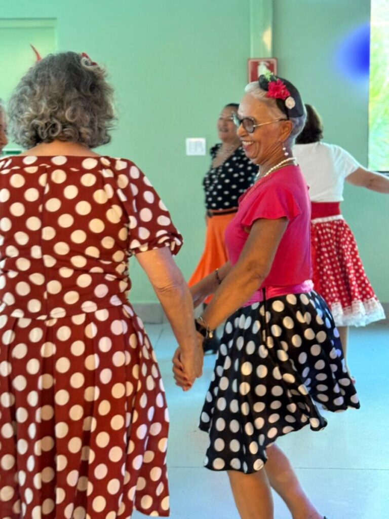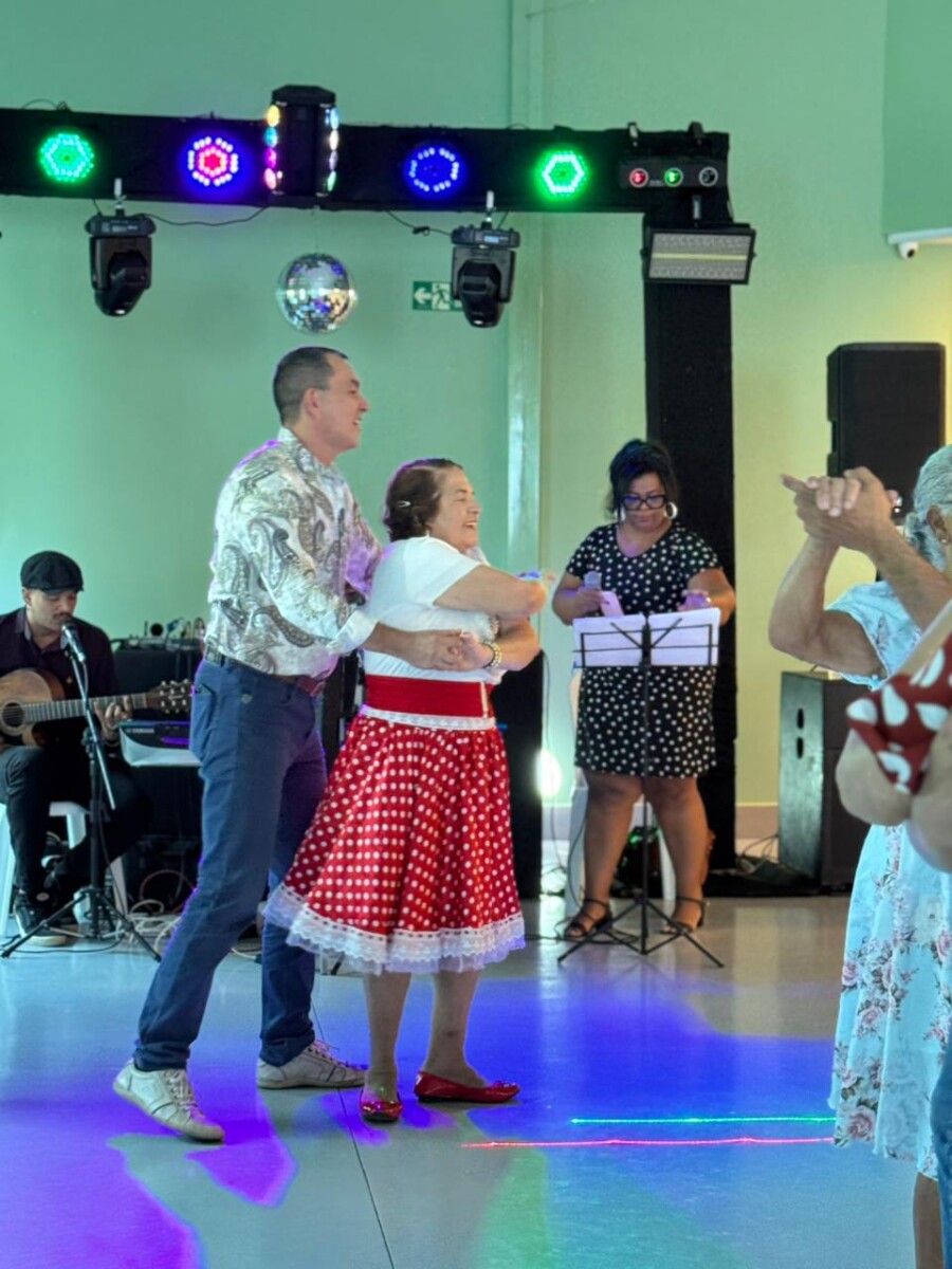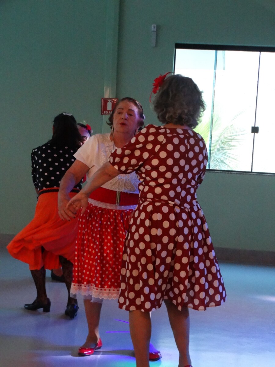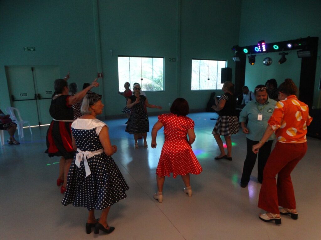 O evento foi uma verdadeira viagem no tempo, repleta de música, cores e alegria. O destaque da tarde ficou por conta do Grupo de Dança Possibilidades e Desafios, coordenado pela professora Célia Maria, com os talentosos monitores João Allisson, Oliver Roger, Carlos Costa e Poliana, que contagiaram o público com suas performances vibrantes.