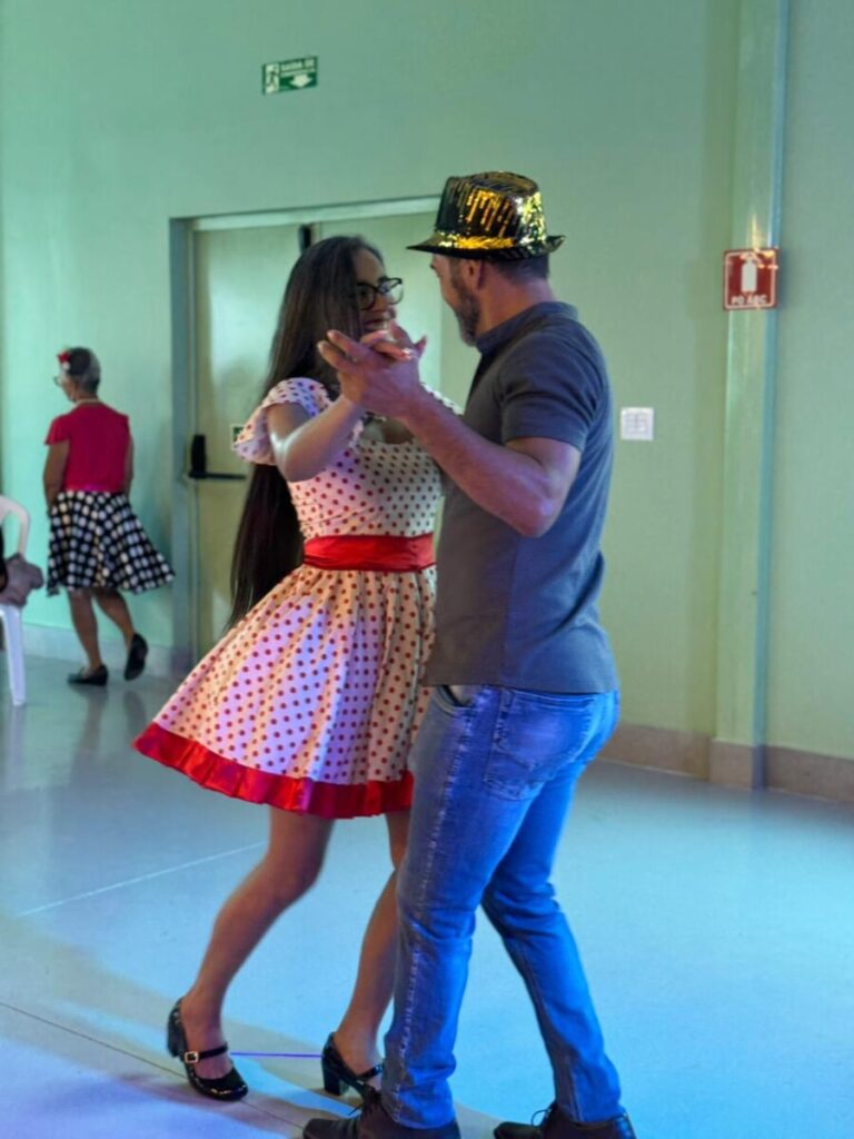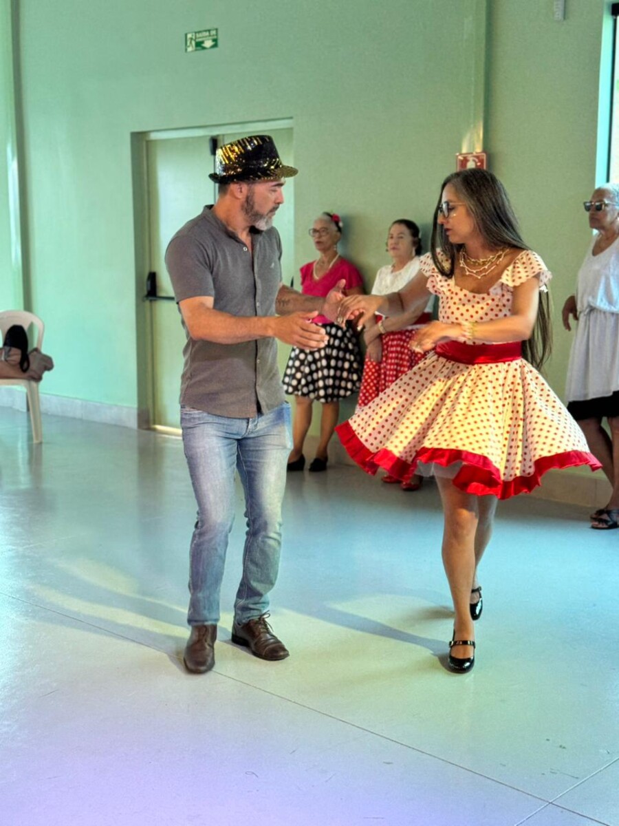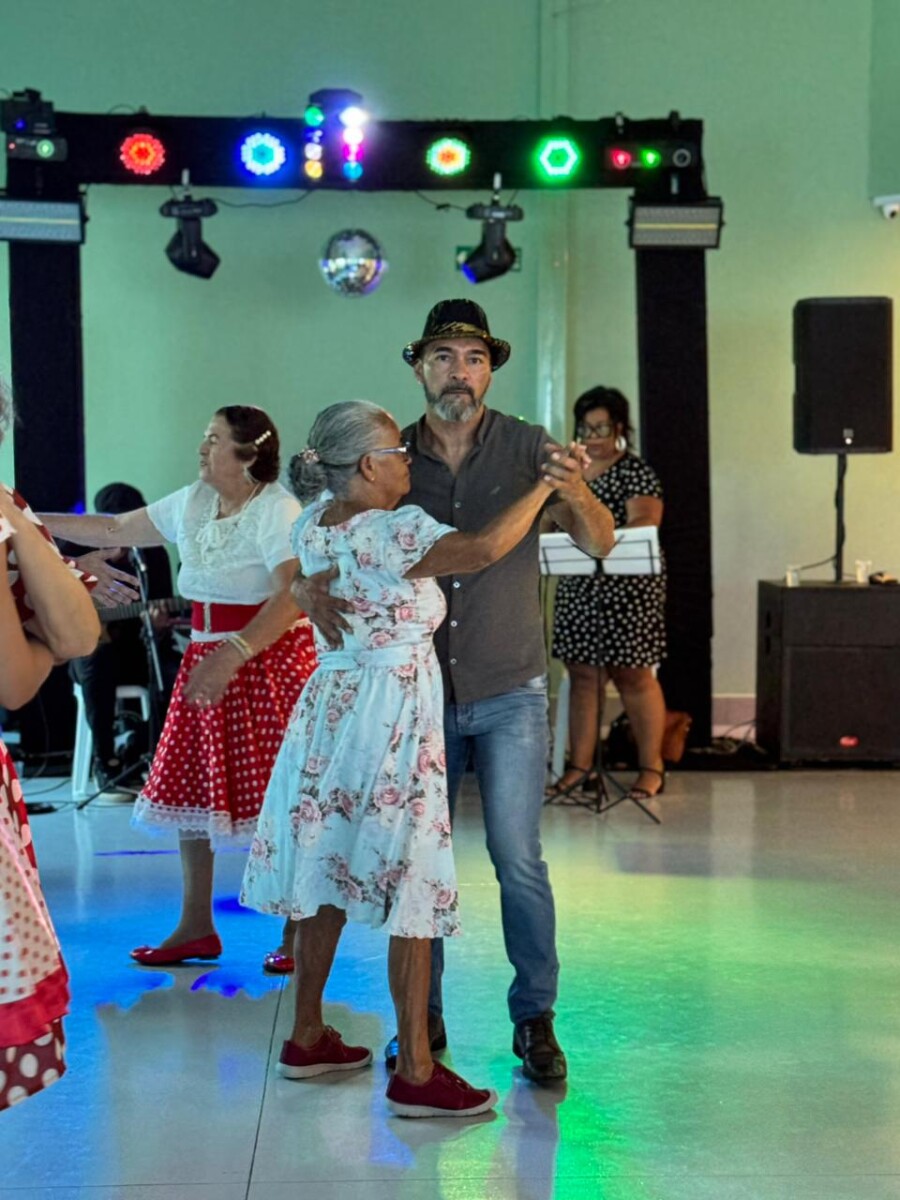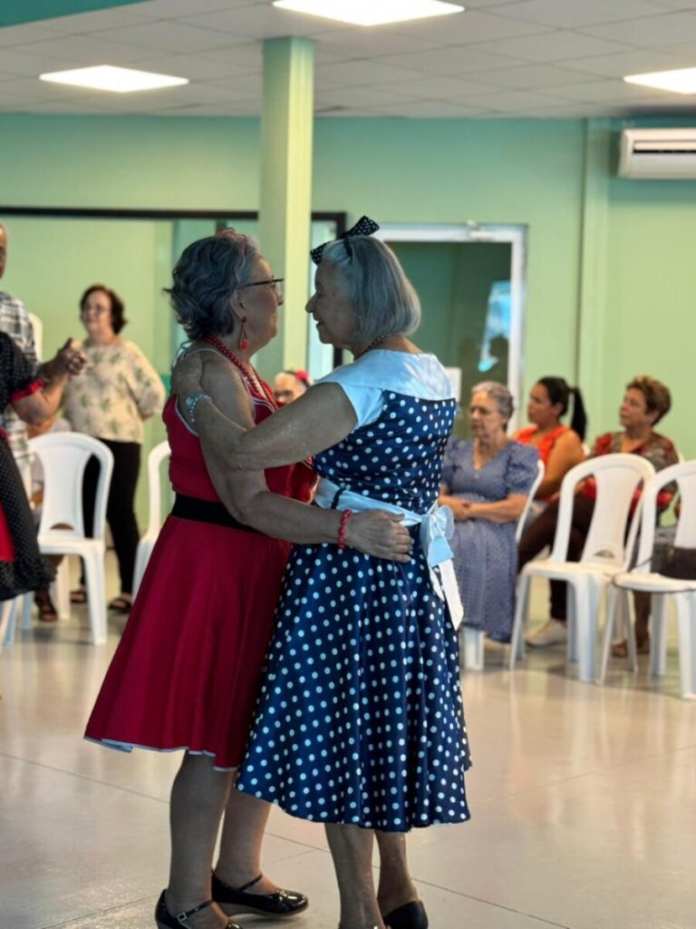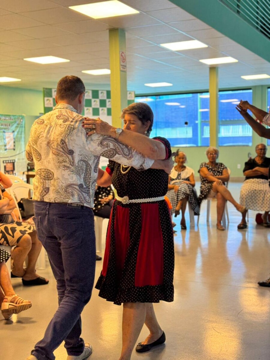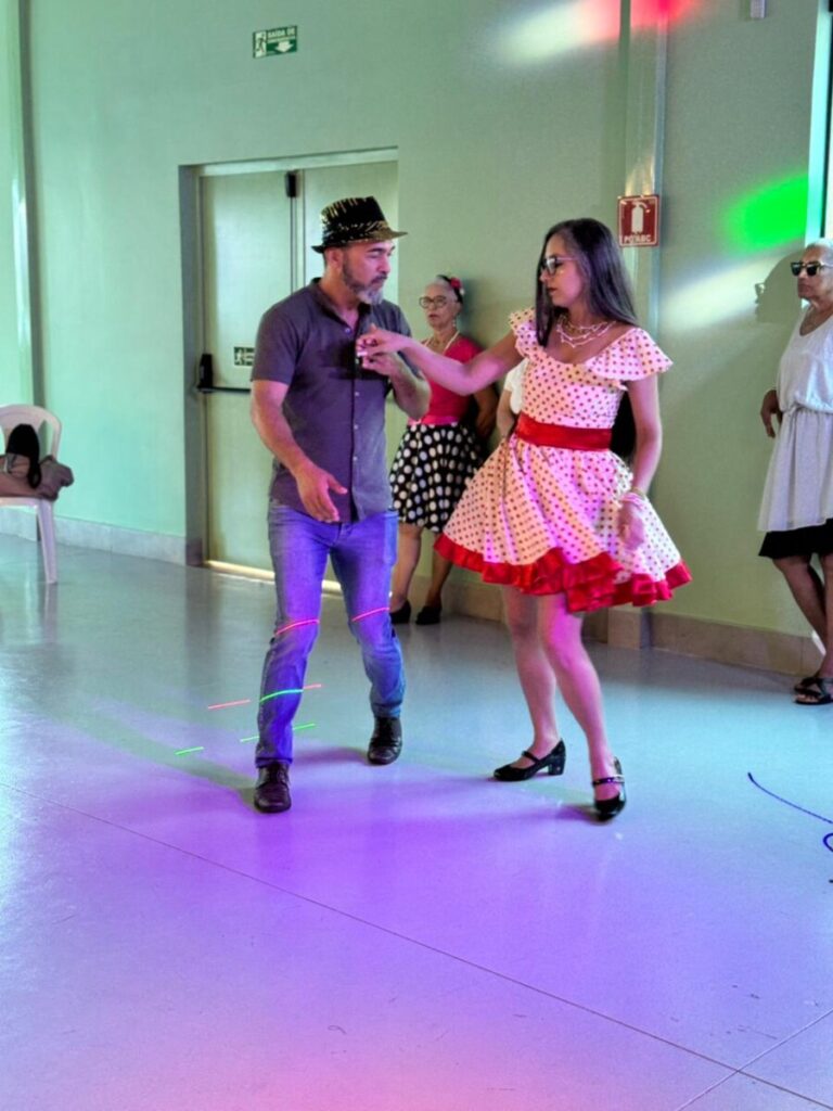 O evento foi uma verdadeira viagem no tempo, repleta de música, cores e alegria. O destaque da tarde ficou por conta do Grupo de Dança Possibilidades e Desafios, coordenado pela professora Célia Maria, com os talentosos monitores João Allisson, Oliver Roger, Carlos Costa e Poliana, que contagiaram o público com suas performances vibrantes.