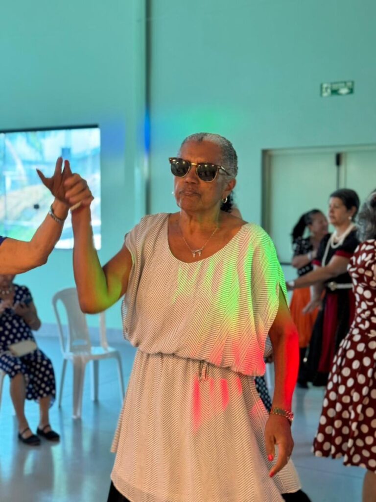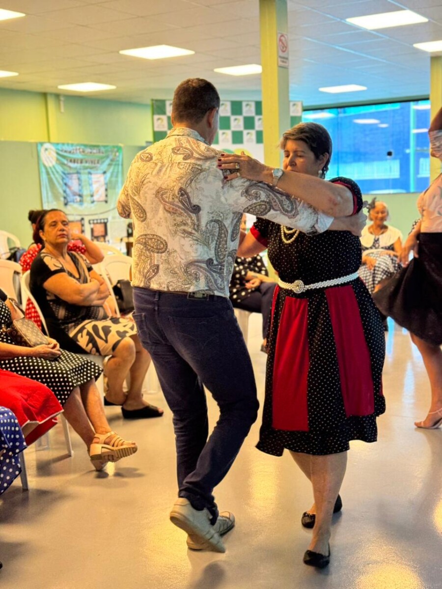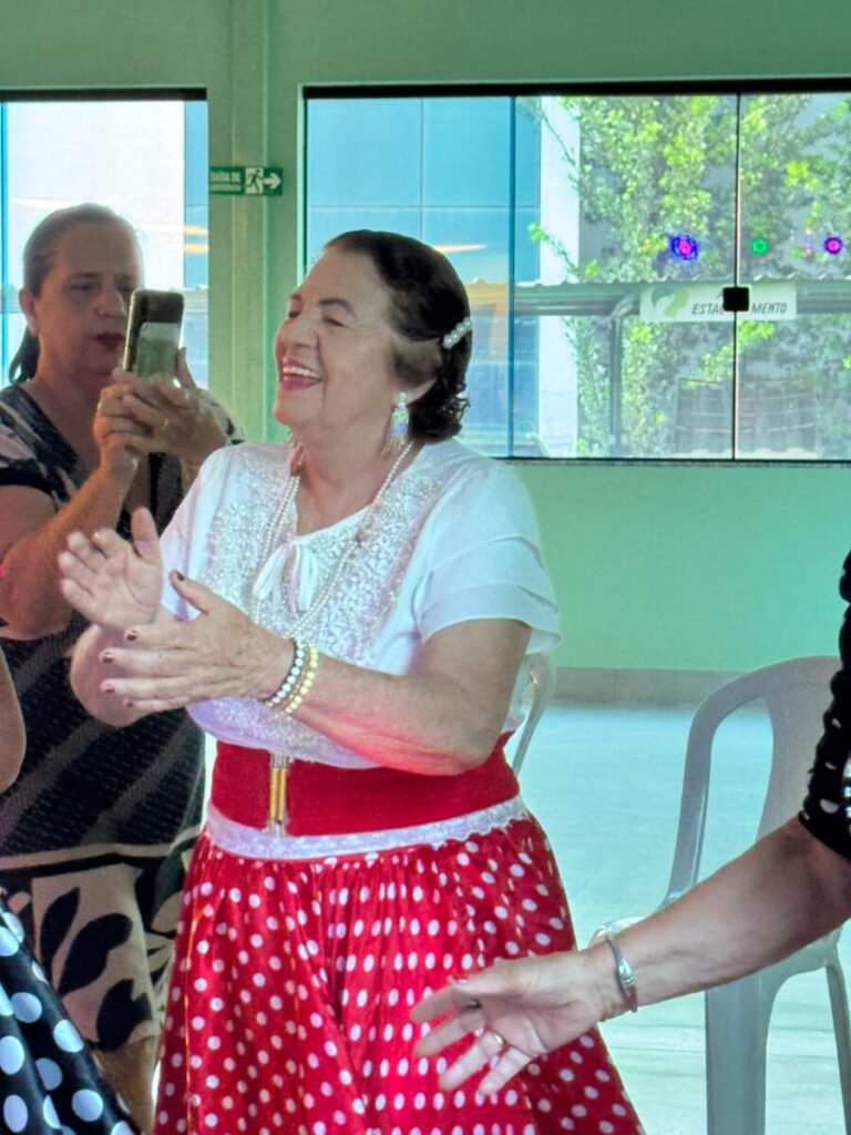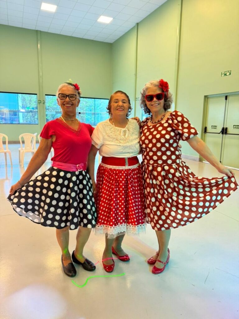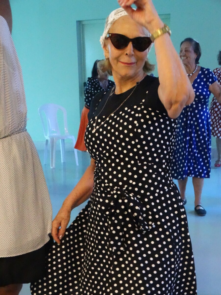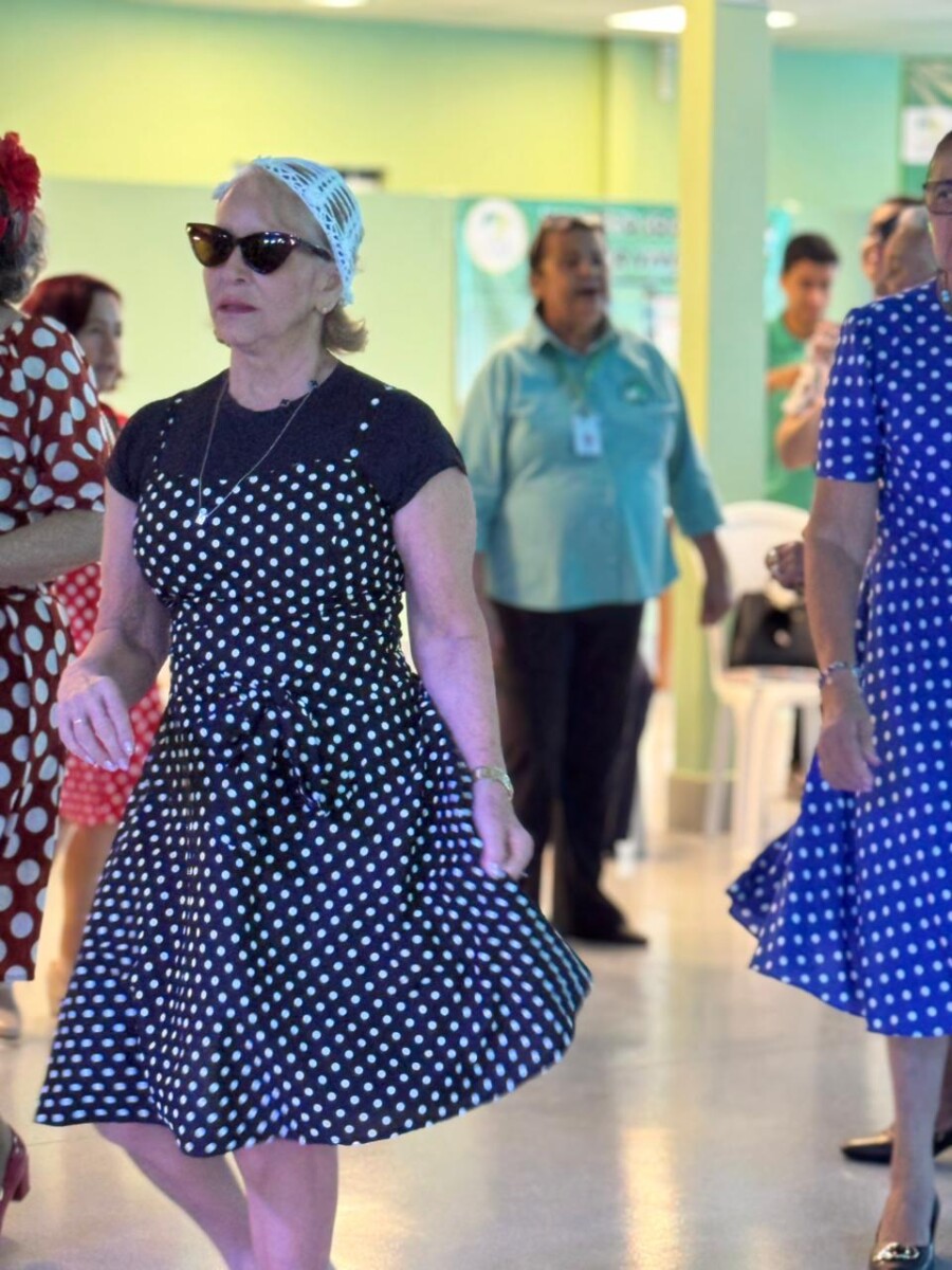 O evento foi uma verdadeira viagem no tempo, repleta de música, cores e alegria. O destaque da tarde ficou por conta do Grupo de Dança Possibilidades e Desafios, coordenado pela professora Célia Maria, com os talentosos monitores João Allisson, Oliver Roger, Carlos Costa e Poliana, que contagiaram o público com suas performances vibrantes.
