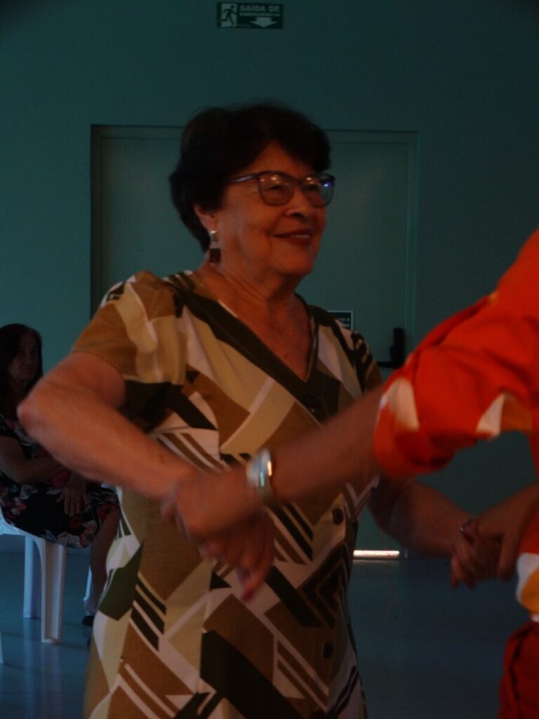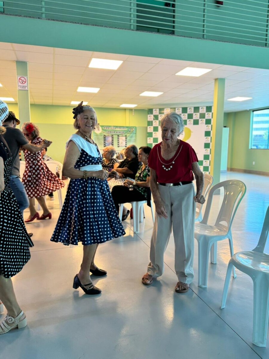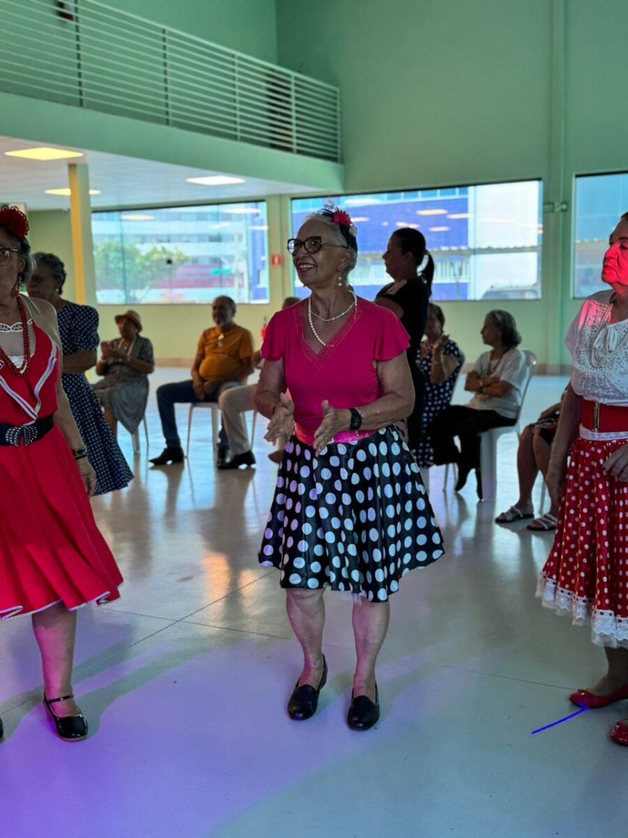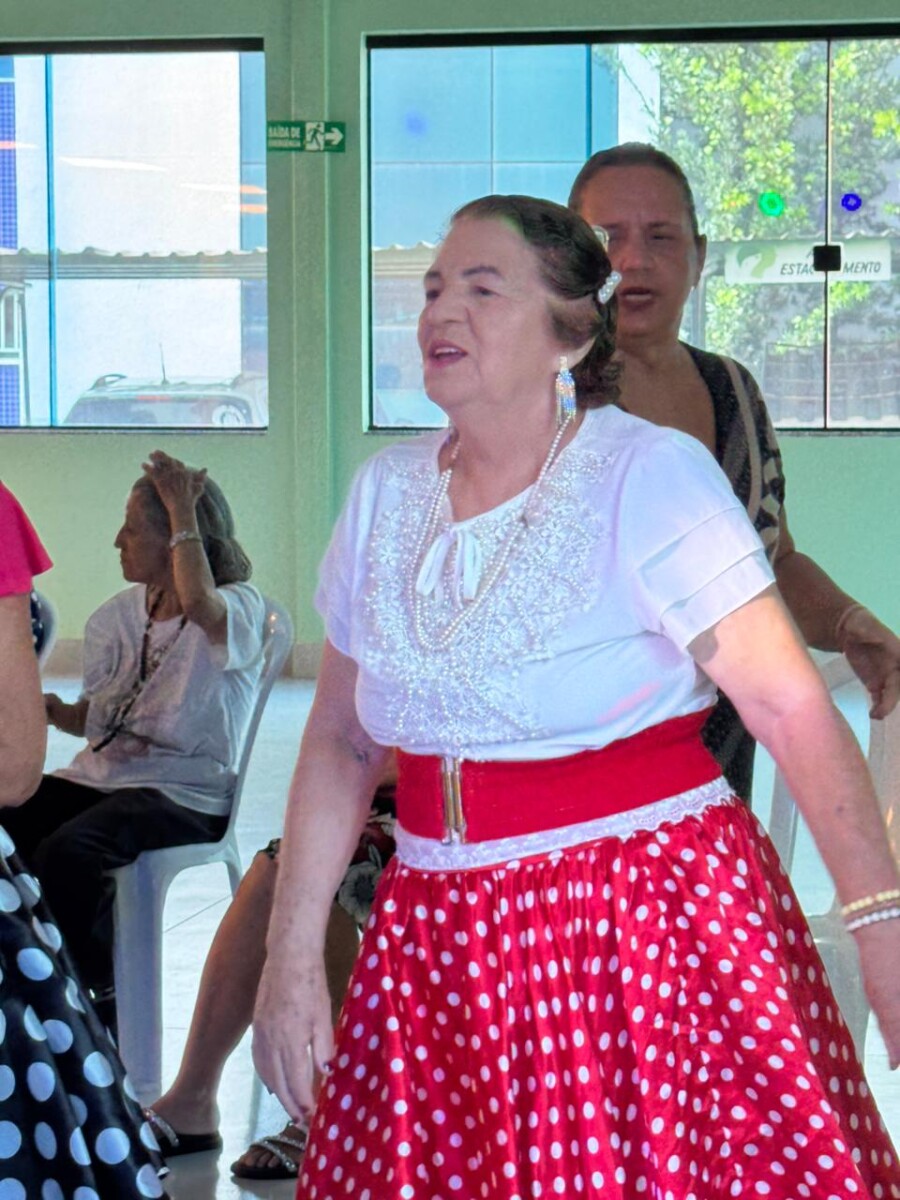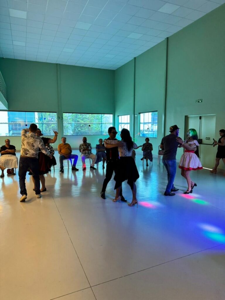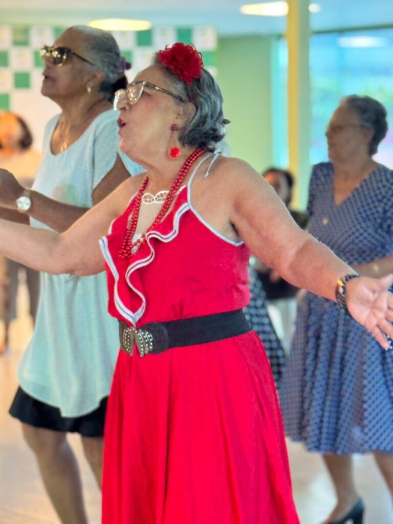 O evento foi uma verdadeira viagem no tempo, repleta de música, cores e alegria. O destaque da tarde ficou por conta do Grupo de Dança Possibilidades e Desafios, coordenado pela professora Célia Maria, com os talentosos monitores João Allisson, Oliver Roger, Carlos Costa e Poliana, que contagiaram o público com suas performances vibrantes.