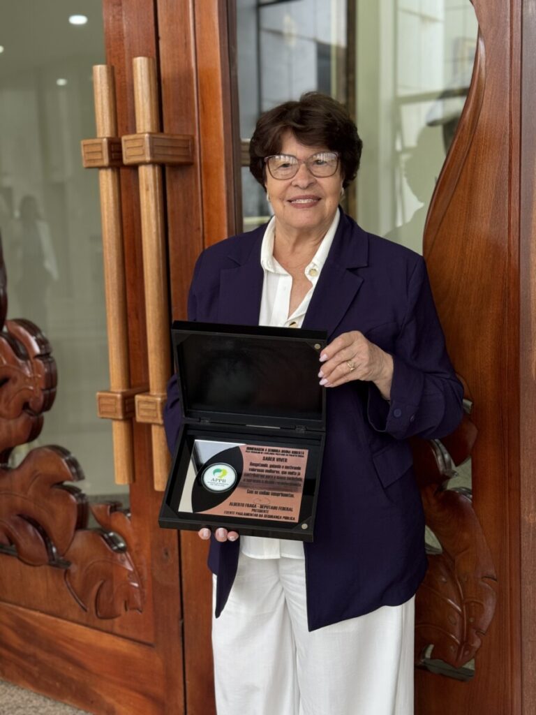 Durante o evento, a APPB recebeu uma honraria em reconhecimento ao trabalho desenvolvido pelo Projeto Social Saber Viver, iniciativa que promove acolhimento, cuidado, inclusão e qualidade de vida à comunidade atendida, reforçando o compromisso social da Associação. A instituição foi representada pela presidente, Sra. Divina Roberta, pela vice-presidente, Sra. Valdeci Custódia, e pela assistente social e coordenadora do projeto, Patrícia Vale, que acompanham de perto as ações e resultados alcançados pelo projeto ao longo dos anos.
