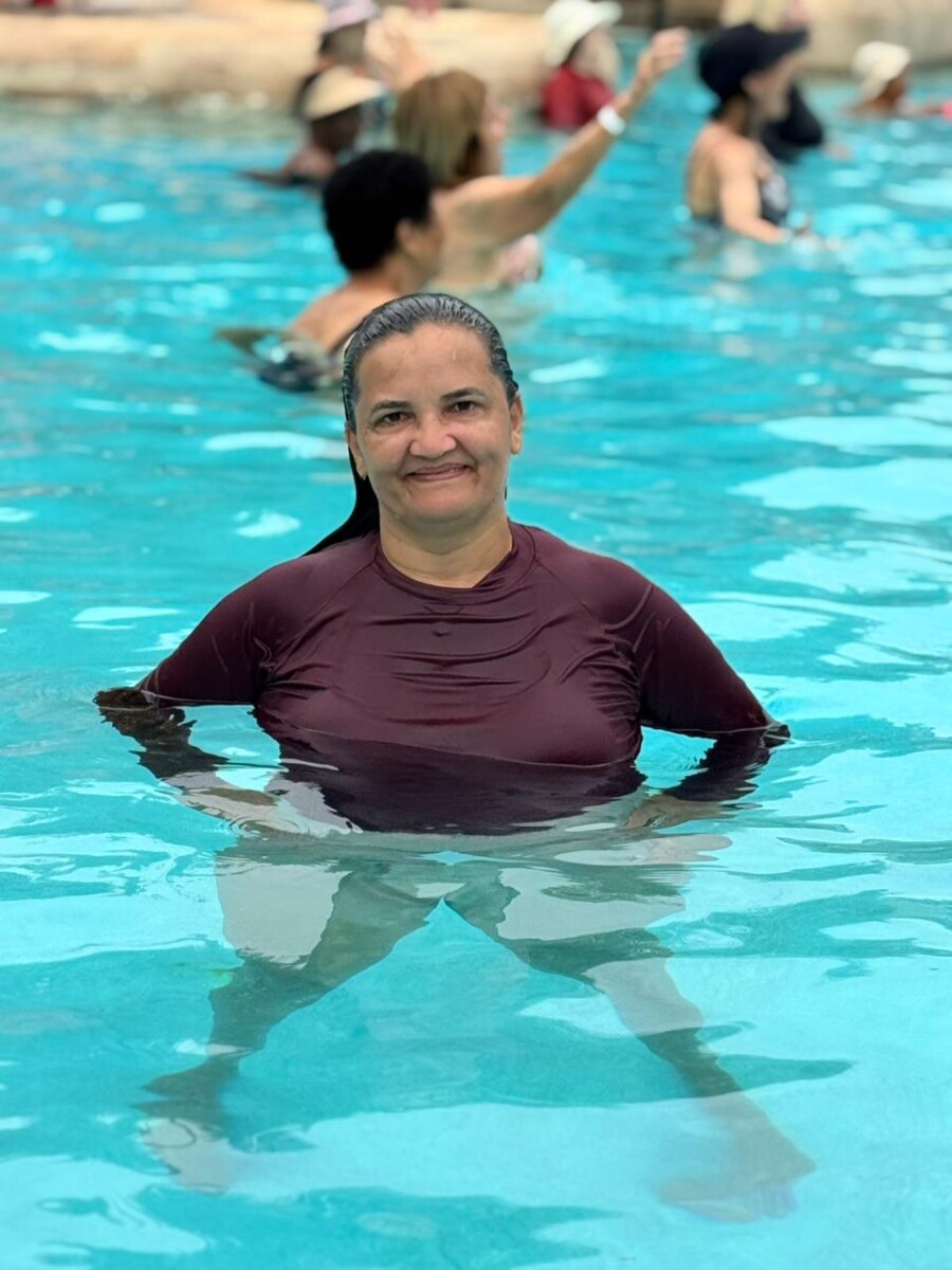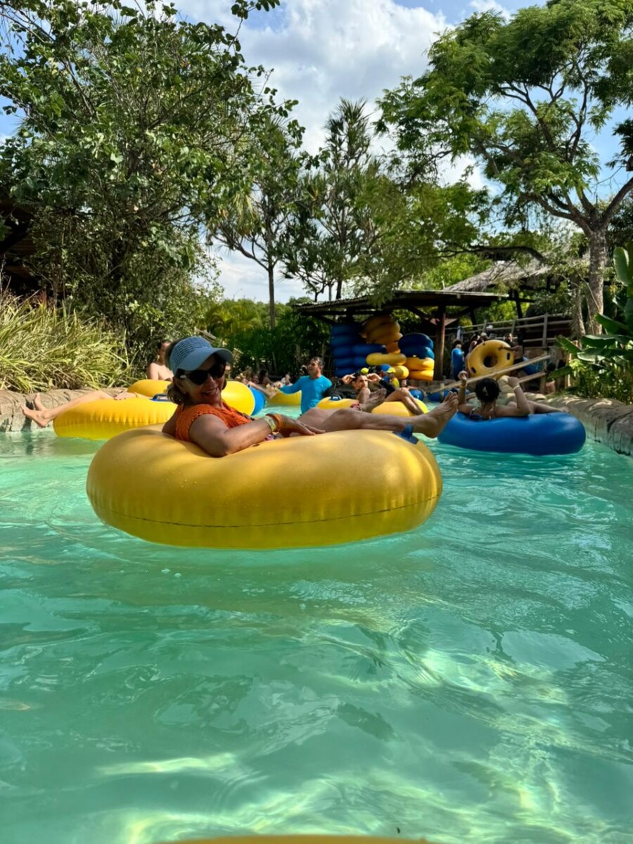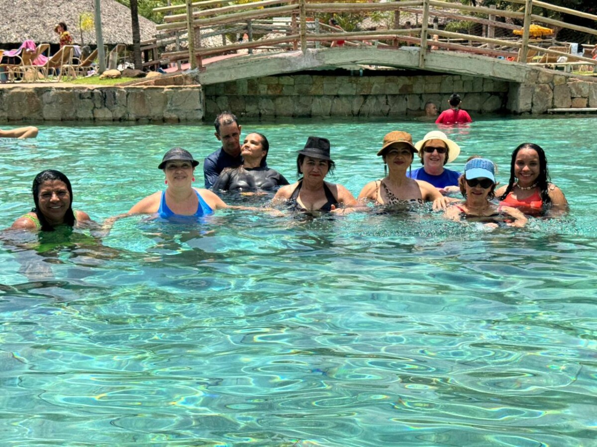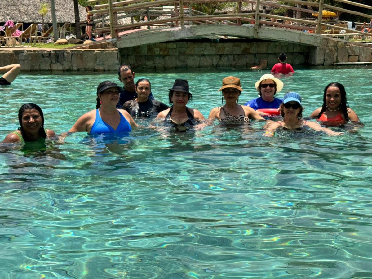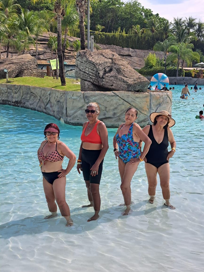 Os participantes aproveitaram intensamente os toboáguas, a piscina de ondas e um almoço saboroso. Ao retornarem ao hotel, encerraram o dia com uma sessão de hidroginástica animada, celebrando mais um dia de convivência e bem-estar.