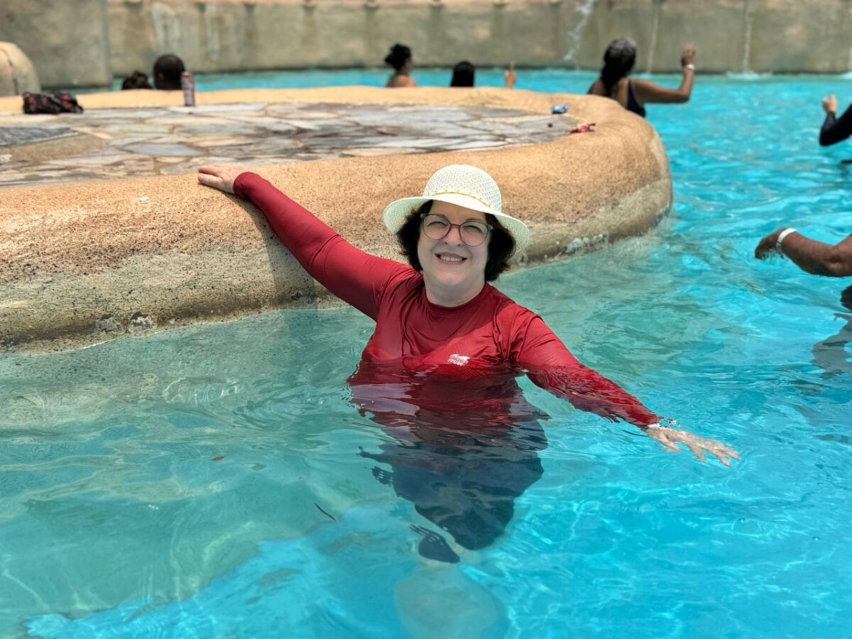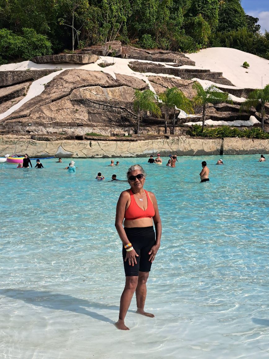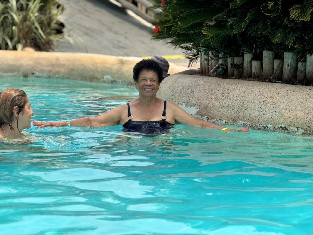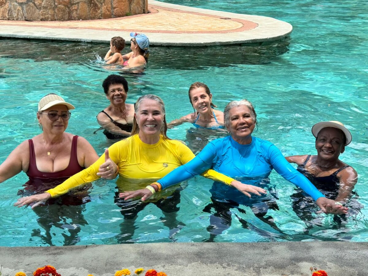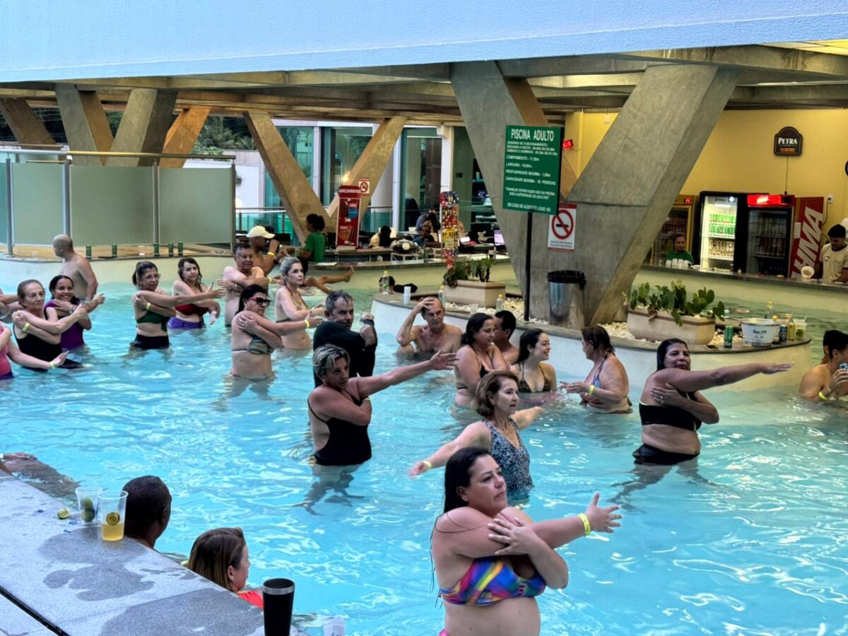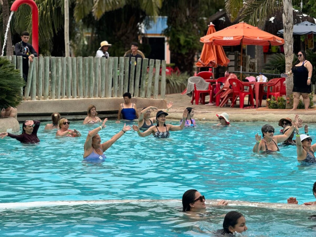 Os participantes aproveitaram intensamente os toboáguas, a piscina de ondas e um almoço saboroso. Ao retornarem ao hotel, encerraram o dia com uma sessão de hidroginástica animada, celebrando mais um dia de convivência e bem-estar.