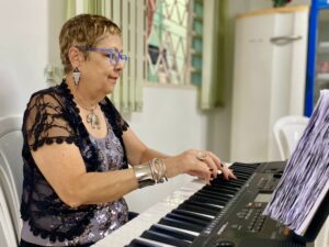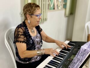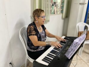 A tarde foi marcada por muita cantoria, que trouxe alegria, diversão e uma energia contagiante para todos os participantes. O Coral “Canta e Encanta” não só proporciona momentos de descontração e bem-estar, mas também fortalece laços de amizade, estimula a autoestima e promove a inclusão social através da música. Esse encontro semanal se tornou um verdadeiro refúgio, onde as vozes se unem para criar um ambiente de acolhimento e celebração da vida em todas as suas fases.